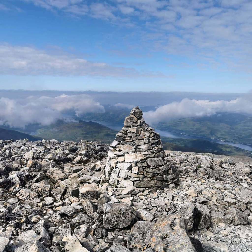 The hike itself was a dream (for me at least). For starters, it was dry. In Scotland. No rain. I repeat, NO RAIN. It was a miracle! It was warm, there were no midges, there was good visibility for the majority of the climb, excluding the actual summit where the clouds tumbled in as I arrived), it wasn’t windy and the SUN even came out for a while! I had hiked in disgusting weather conditions prior to Ben Nevis – through sub-zero temperatures, gale-force winds, horizontal hailstones which provided the most extreme exfoliation my face had ever experienced (do not recommend!) and can’t-see-a-bloody-thing fog on top of that. As a sun-worshiper who adores countryside scenery, being able to absorb the beautiful sights from half-way up our country’s highest mountain in the glorious sunshine, was, literally, heavenly.